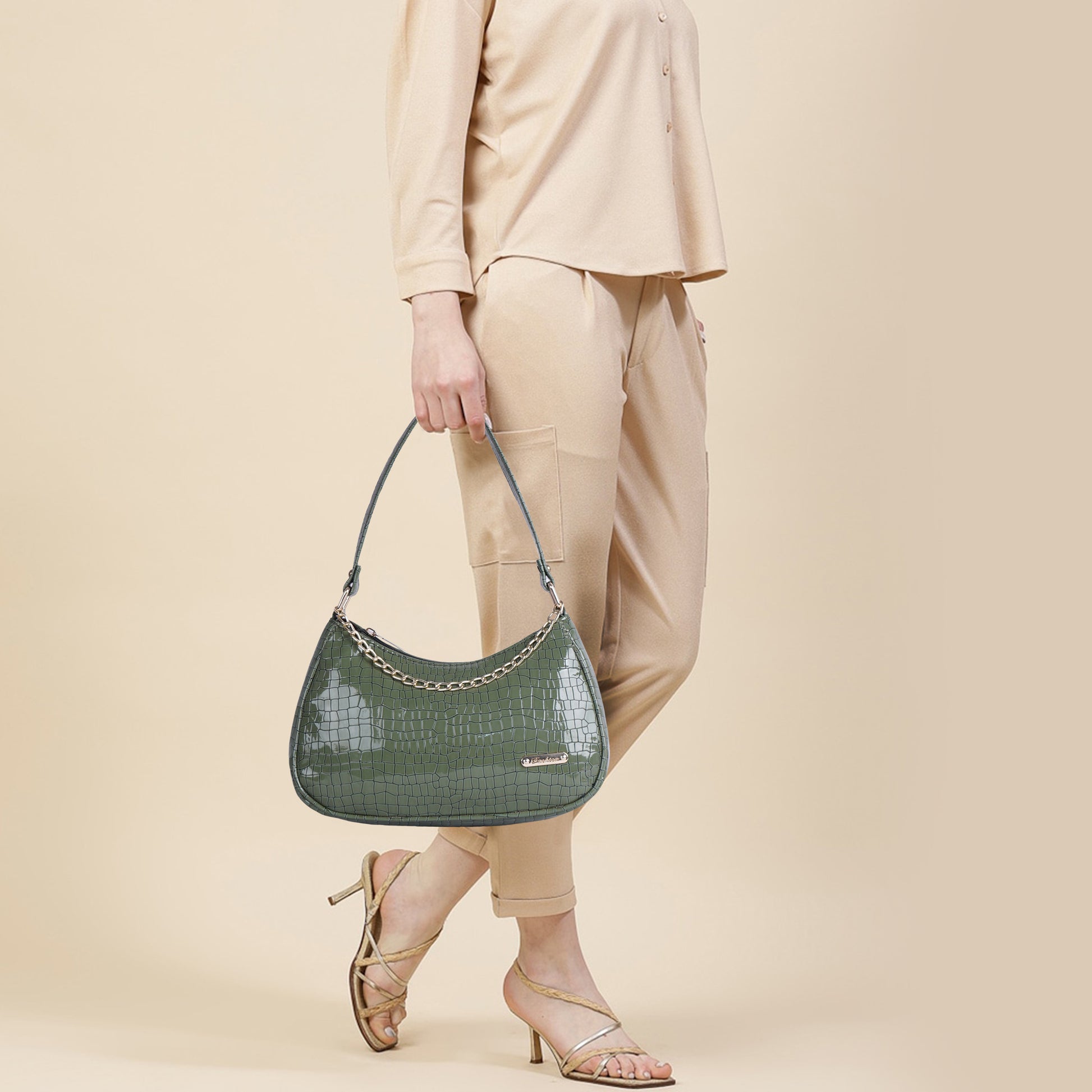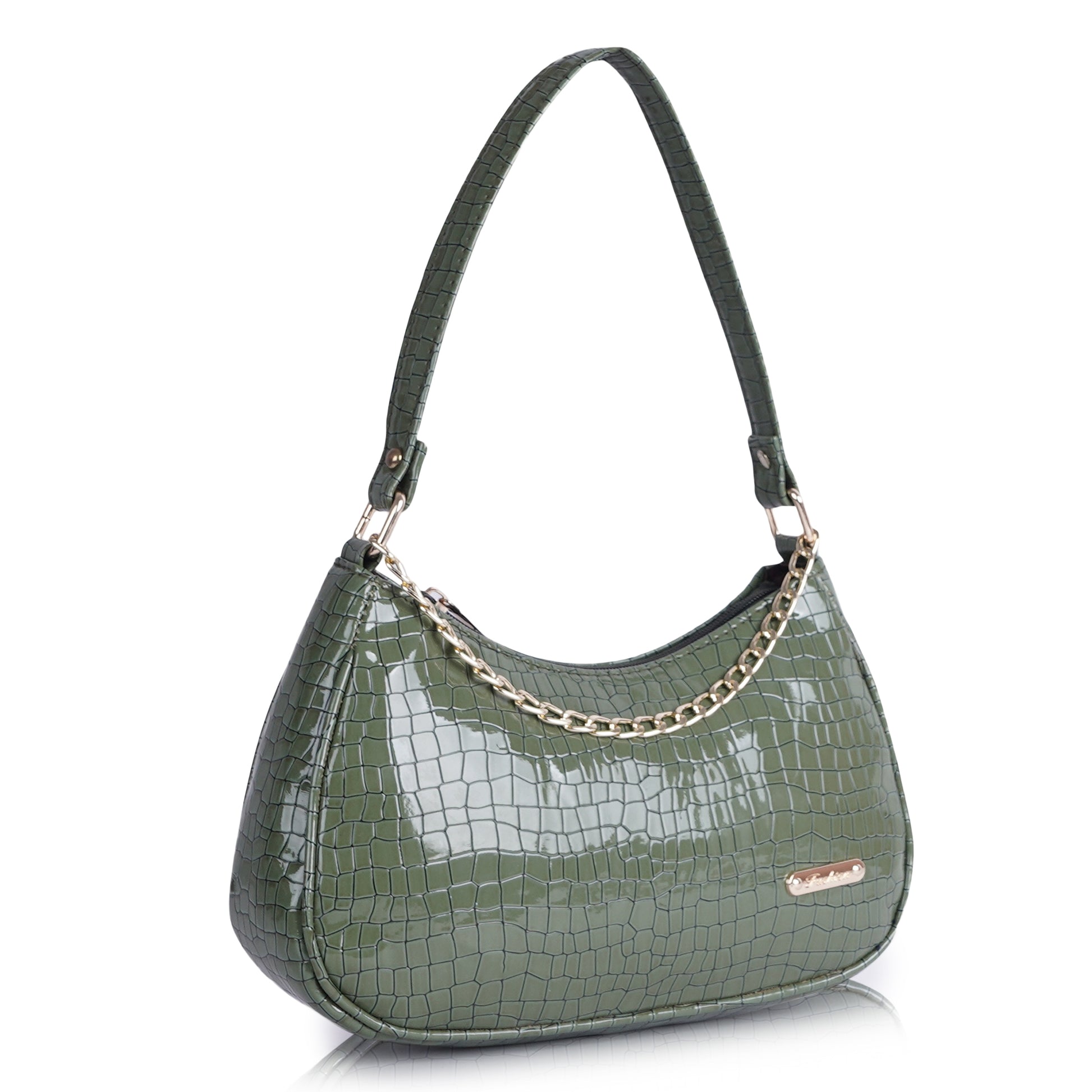 Step into modern style with this olive green sling bags for women design, made to mix fashion and functionality. Perfect for daily use or special events, this bag stands out from sling bags for women stylish for its unique color and premium design. The adjustable crossbody belt adds comfort and usefulness, making it a smart choice for anyone looking for sling bags for women. At the same time, its price ensures it belongs among the most desirable sling bag for women under 500, giving you high style without stretching your pocket. With its croco pattern and golden chain, this bag works as one side bag for women stylish enough to enhance outfits and ethnic looks. Perfectly sized and designed, it earns its place as one of the best women sling bags. make it a favorite choice as green sling bags for women who love elegance with a touch of uniqueness. Modern, trendy, and highly functional, it also works as a perfect ladies side bag.