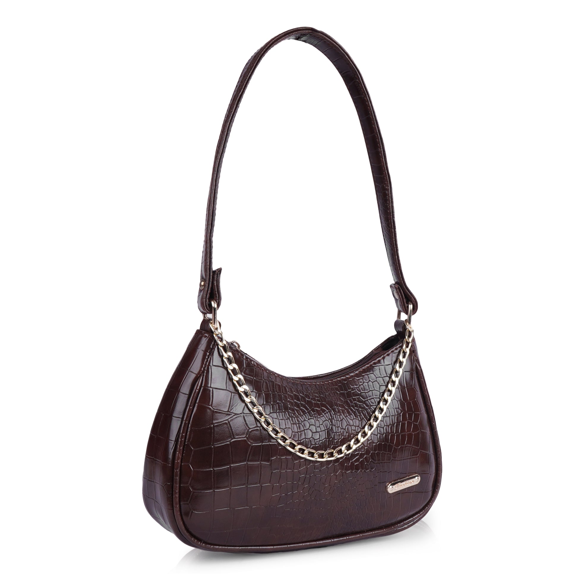 This versatile side bag is a must-have cross body sling bag for woman who values both fashion and style. Durable and side, it stands out as side bags for women stylish and brings a premium touch to everyday use. The deep brown color mixes with golden detailing, creating a trendy vibe. Its croco pattern adds texture and elegance, making it a good choice as a side bag for woman. The smart design makes sure you can carry your items like your wallet, phone, and makeup with ease. Because of its detachable chain, it also works as a purse for women sling bag, best for both festive looks and modern style. It's lightweight and durable, giving you the freedom to use it daily without losing its shine. As one of the most useful side purse for women, it transitions easily from day to night. Pair it with dresses, jeans, or formal outfit, and you’ll see why it’s loved as one of the best women sling bags stylish. If you are looking for ladies sling bags for women stylish, this side bag is a perfect match—offering both function and useful. It’s compact and spacious, making it the ultimate sling purse for women who want a neat, trendy look without compromising on style. The most stylish side sling bag for women.